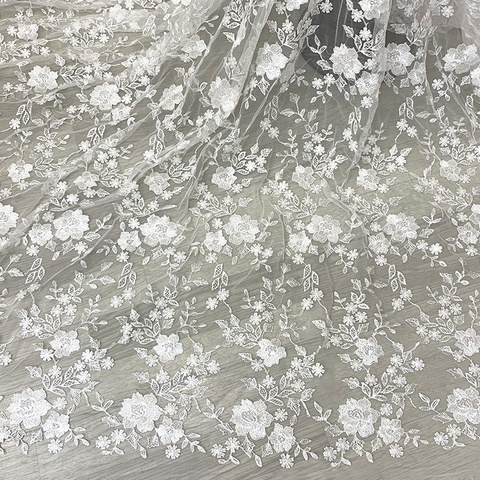 Beautiful Bridal Wedding Dress Ivory Embroidered Floral Tulle Lace Fabric with Sequins LT21911